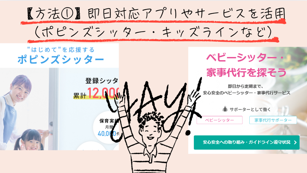 【方法①】即日対応アプリやサービスを活用(ポピンズシッター・キッズラインなど)