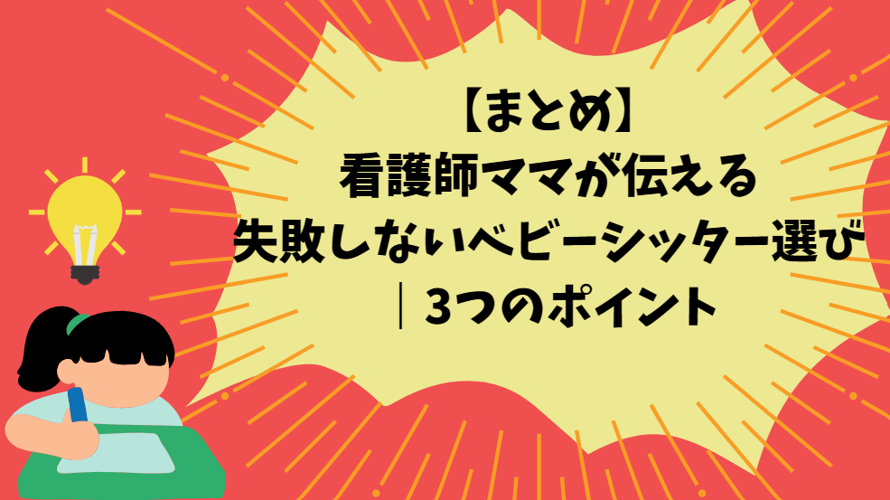 【まとめ】看護師ママが伝える失敗しないベビーシッター選び|3つのポイント